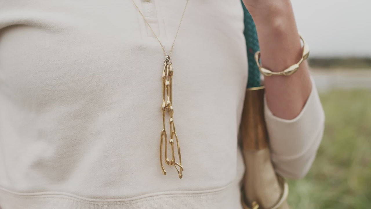 Channel your inner mermaid and embrace your golden glow. The 10K gold plated Seaweed Necklace captures the beauty of rockweed bubbles in a stunning design that feels both bold and ethereal.